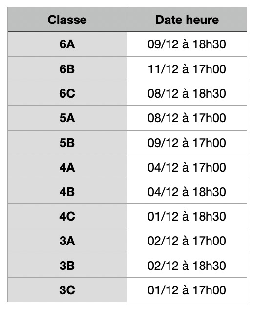 Voici les dates des conseils de classe du premier trimestre. Transmettez nous vos avis et questions via le formulaire de contact.